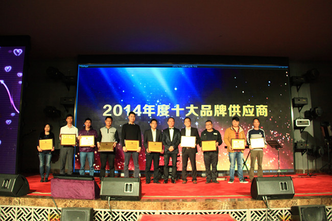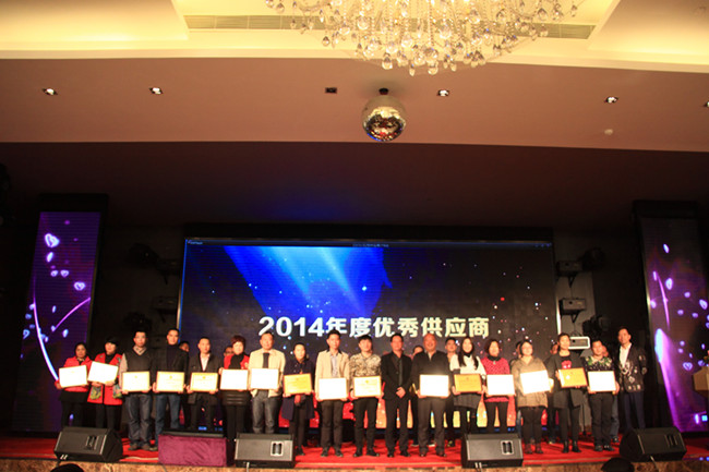 为打造公司董事局与各友好供应商紧密交流与事业合作的平台,会后,壹加壹盛情宴请全体友好供应商代表齐聚酒楼,参加公司精心筹备的答谢晚宴;晚宴上,董事局向在场所有的友好供应商表示衷心的感谢与新年的祝福;同时,董事局为优秀的供应商亲手颁发了“2014年度十大品牌供应商”和“2014年度优秀供应商”两大奖项。整场晚宴气氛融洽,在轻松欢快的氛围中,既加深了双方的真诚情谊,更坚定了双方未来长久的合作信心。